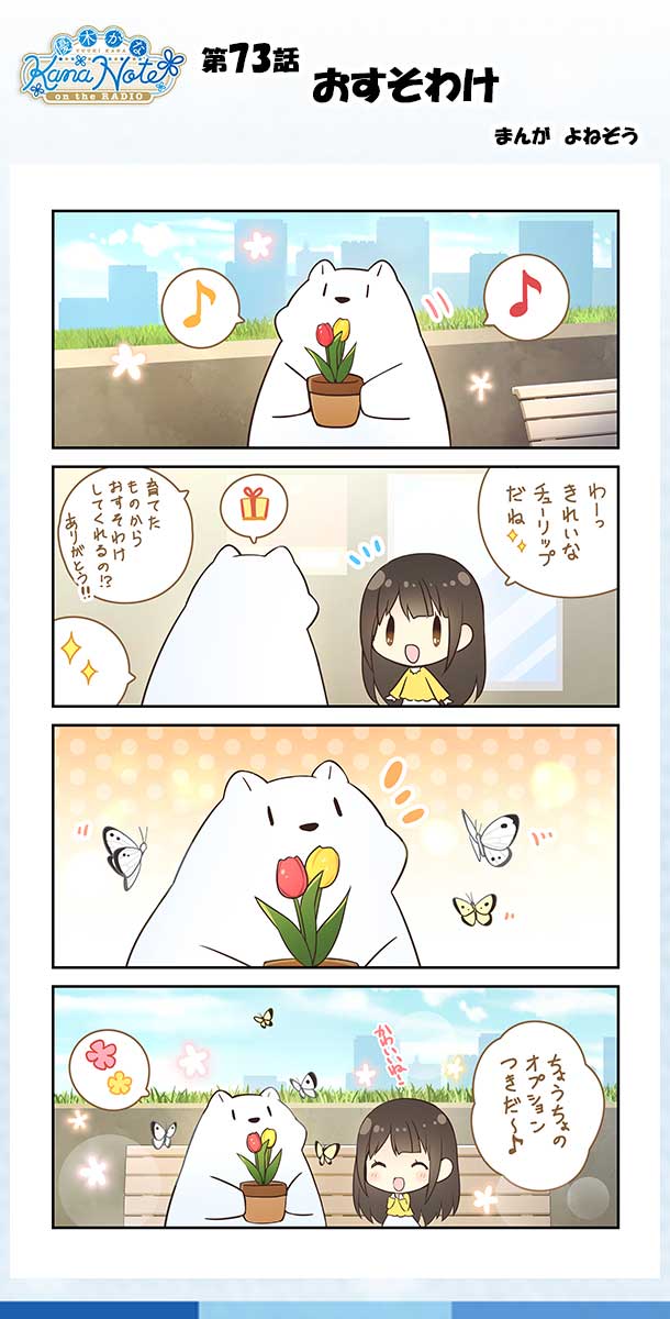 17 69 【週刊連載|番組スピンオフ4コマ漫画】 かなちゃん、頑張る。 「第74話 しろくま宅急便」(まんが:よねぞう) #優木かな #かなのーと 20/03/29 21:13