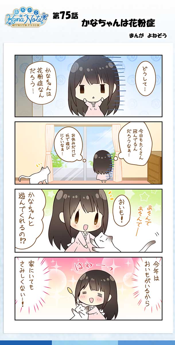 【週刊連載|番組スピンオフ4コマ漫画】 かなちゃん、頑張る。 「第75話 かなちゃんは花粉症」(まんが:よねぞう) #優木かな #かなのーと