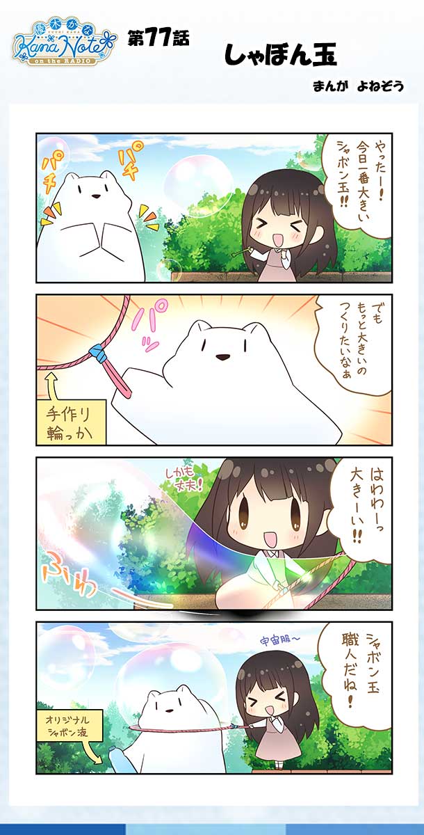 【週刊連載|番組スピンオフ4コマ漫画】 かなちゃん、頑張る。 「第77話 しゃぼん玉」(まんが:よねぞう) #優木かな #かなのーと
