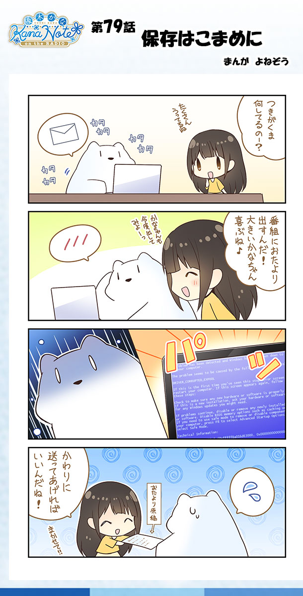 【週刊連載|番組スピンオフ4コマ漫画】 かなちゃん、頑張る。 「第79話 保存はこまめに」(まんが:よねぞう) #優木かな #かなのーと