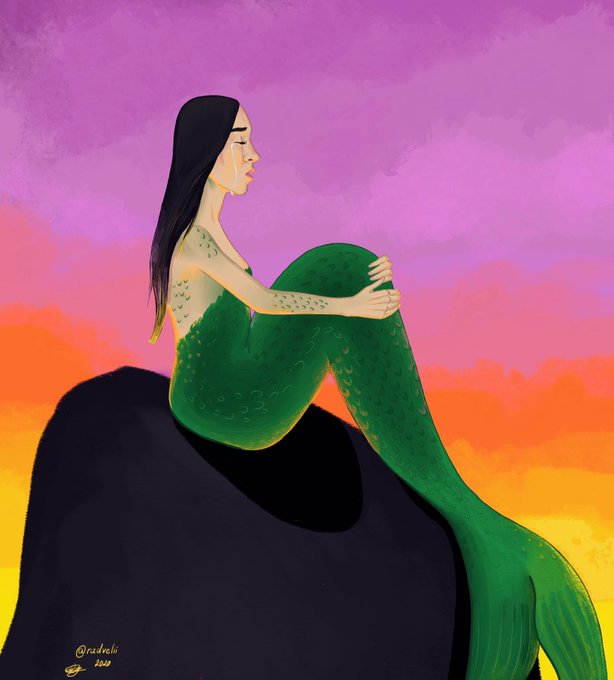 my 2020 mermay redraw of the same artwork from 2018 and 2019 #art #digitalart #drawing #illustration #mermay #mermaid #redraw #procreate #digitaldrawing #tears #sadness #sunset #artwork #artist #illustrator #twitterart