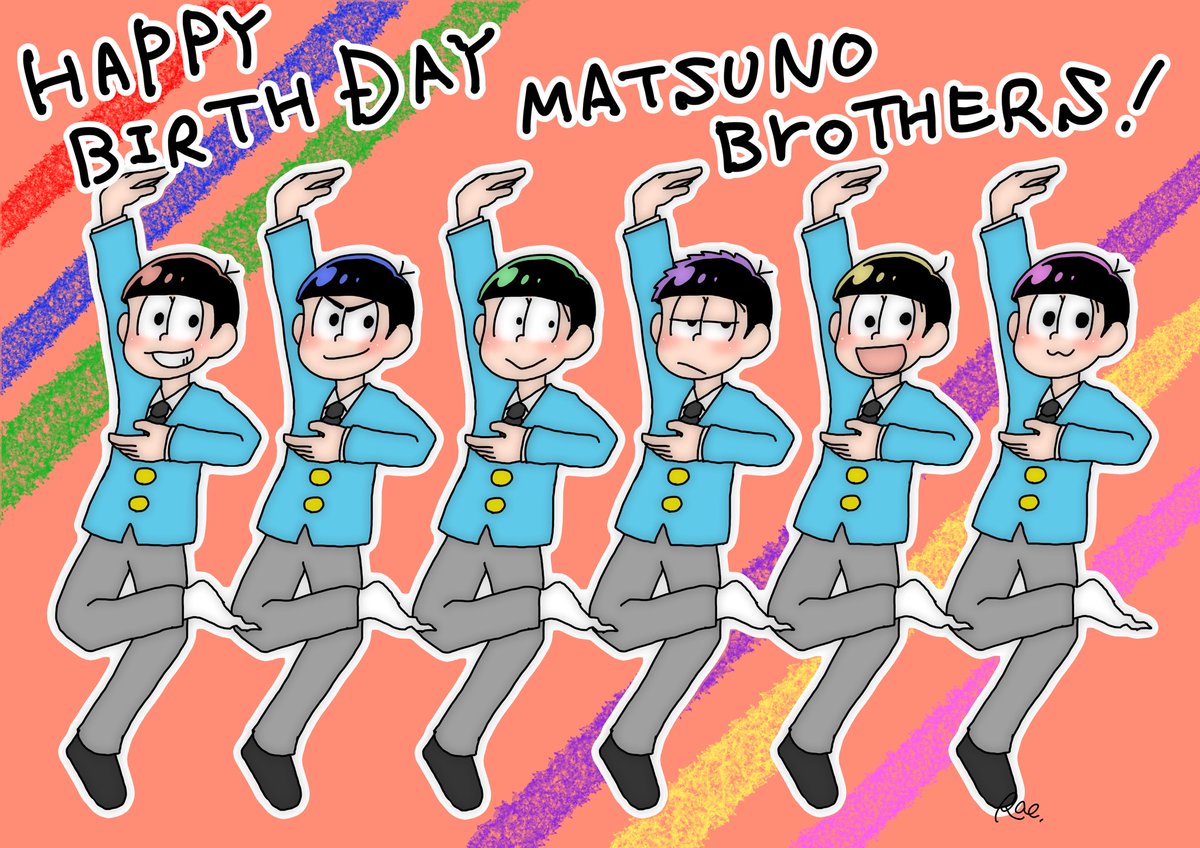 #松野家6つ子生誕祭お祝いイラスト #松野家6つ子生誕祭2021 #おそ松さん生誕祭 もっと凝ったの描きたかったけど今はこれで…🙃 遅刻したけどおめでとうむつご! こんなに人生狂わされたジャンルもそう無いわ! 来年も祝わせてね(´◡͐`)