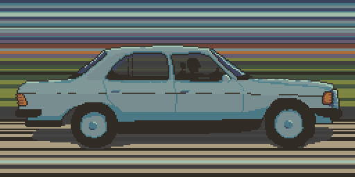 DAY 6: fasten seatbelt. good thing i drew the lines in the background by accident. they make the car look driving pretty fast. :) #pixelart#ドット絵#aseprite