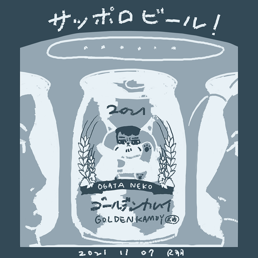 16 70 #ゴールデンカムイ版深夜の真剣お絵描き60分一本勝負 [お題] サッポロビール 白+尾です!(一起逛超市...? OGATA NEKO!🐈有點像招財貓><💕 21/11/07 23:37