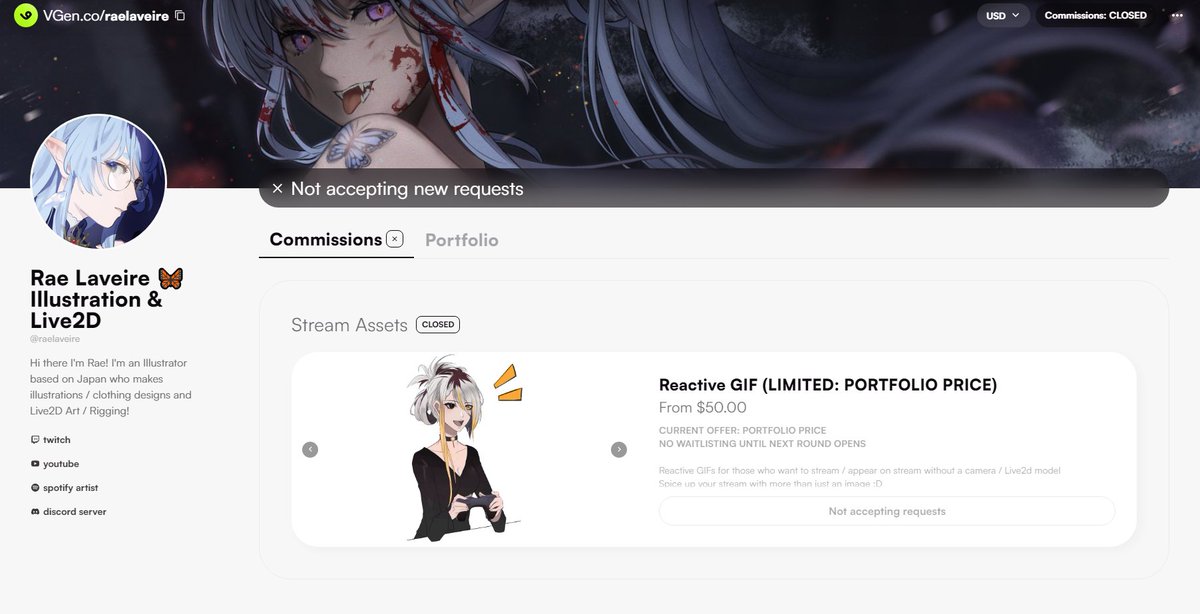 Hello there everyone! Both me & @Aquashesummers will be opening the slots to the public on: 5th of February 1PM GMT+8/UTC +8 The following link will show you the ToS and workflow of the commission vgen.co/raelaveire We look forward to the requests on the day!