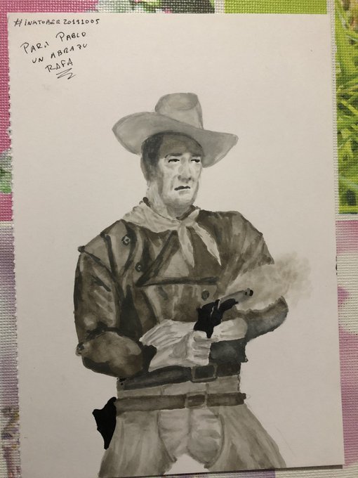 #Inktober2019 #Día5 The Duke dejará el lejano Oeste para visitar Bilbao, allí le espera @PabloBerastegui un apasionado del western y de John Wayne