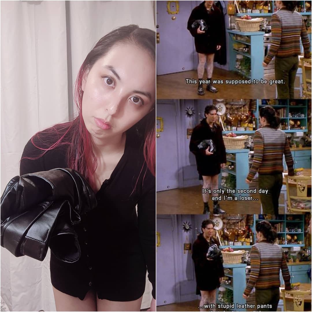 "𝑰𝒕'𝒔 𝒐𝒏𝒍𝒚 𝒕𝒉𝒆 𝒔𝒆𝒄𝒐𝒏𝒅 𝒅𝒂𝒚 𝒂𝒏𝒅 𝑰'𝒎 𝒂 𝒍𝒐𝒔𝒆𝒓!" #friends #rossleatherpants #cosplay #hny #thisyearismyyear lololol
