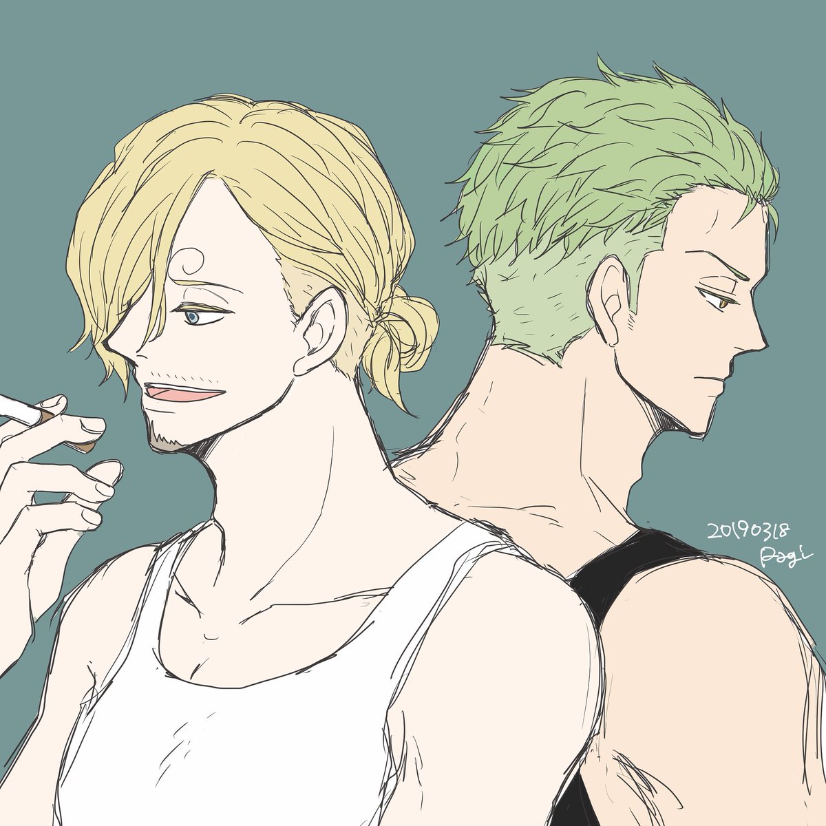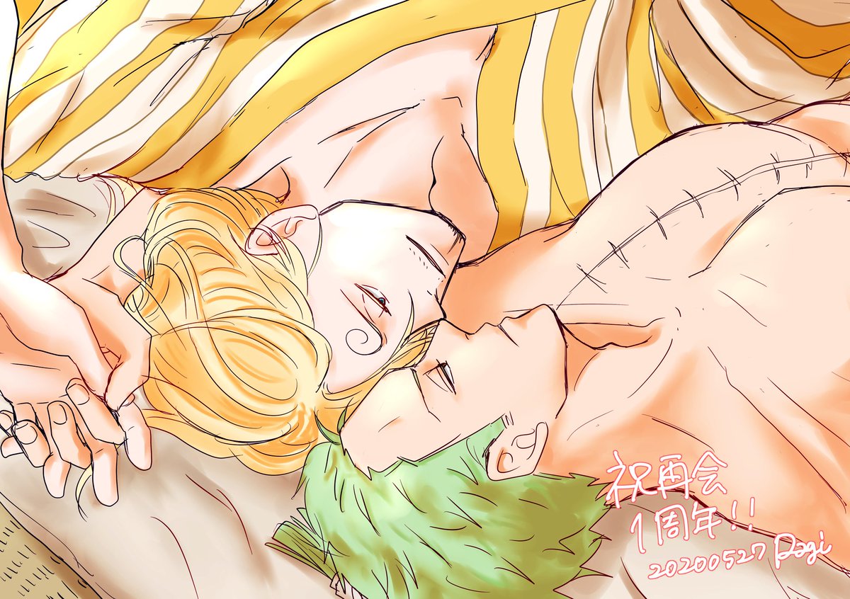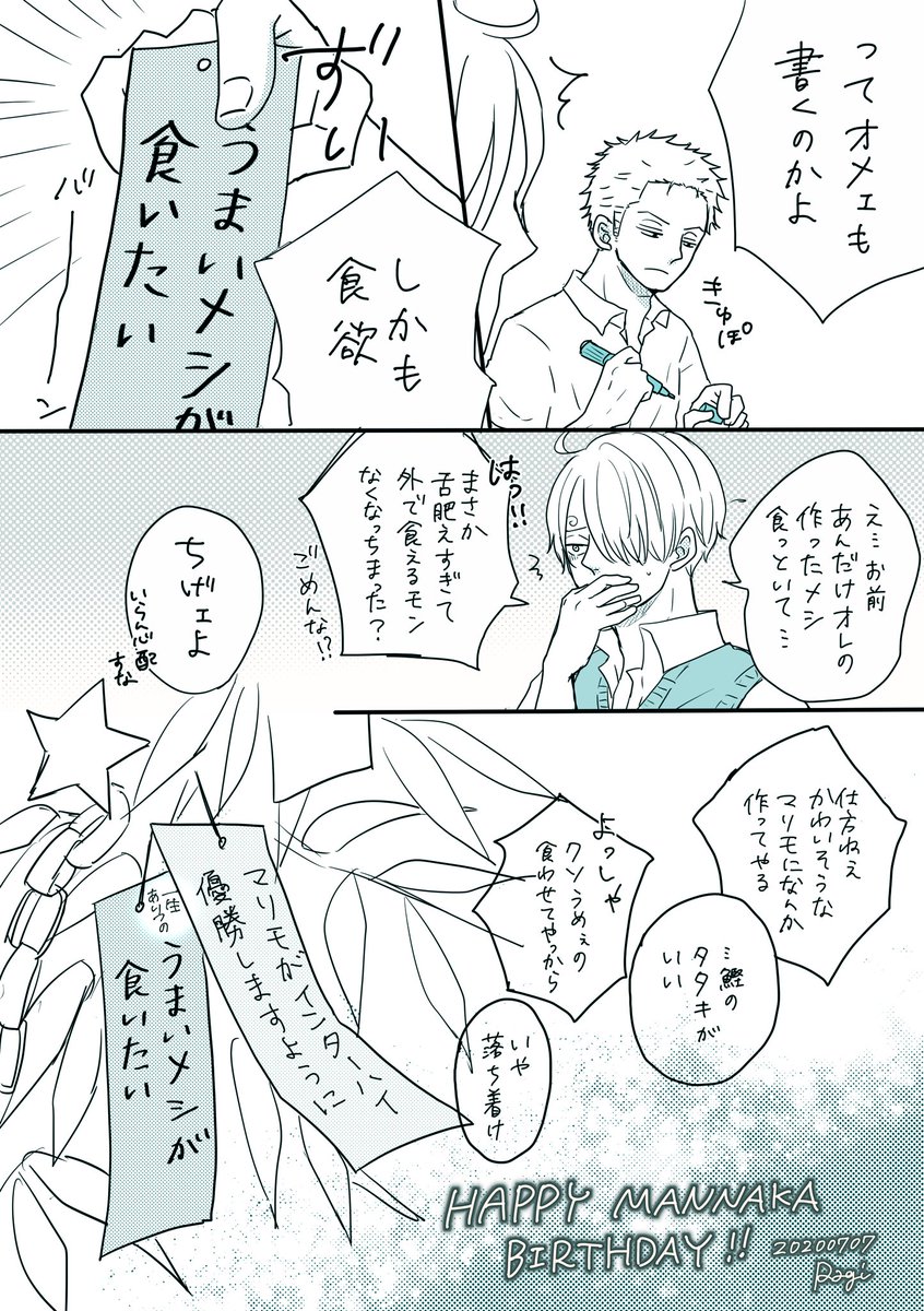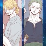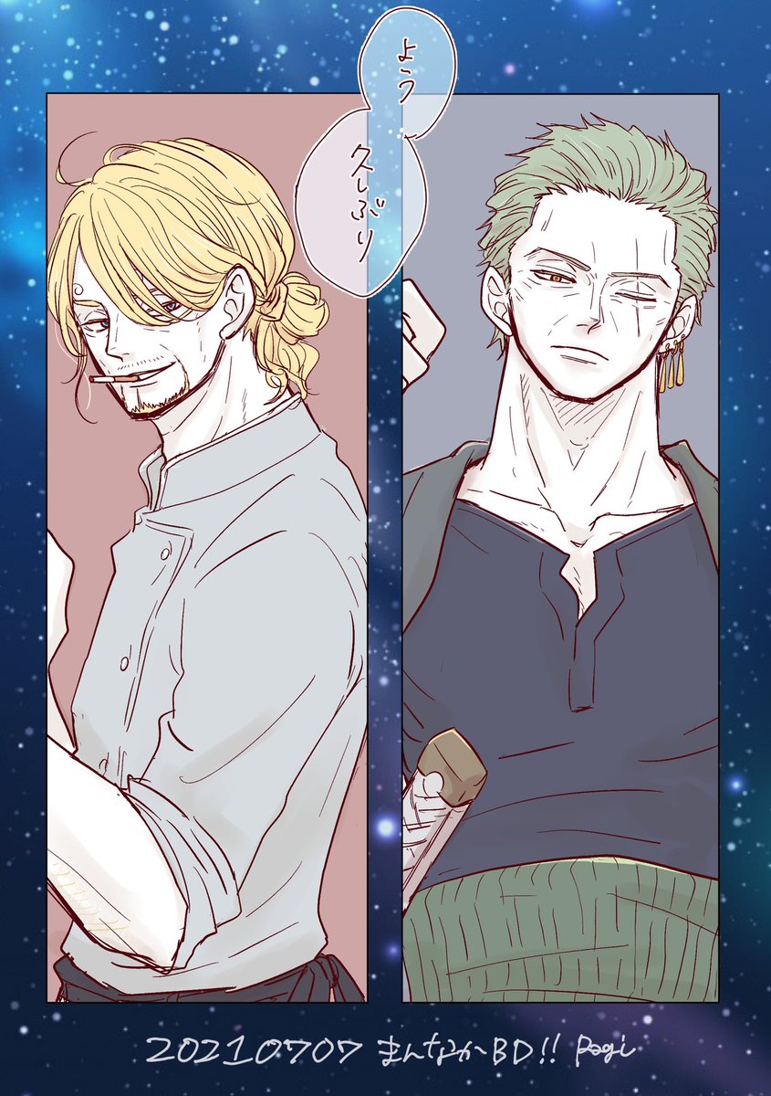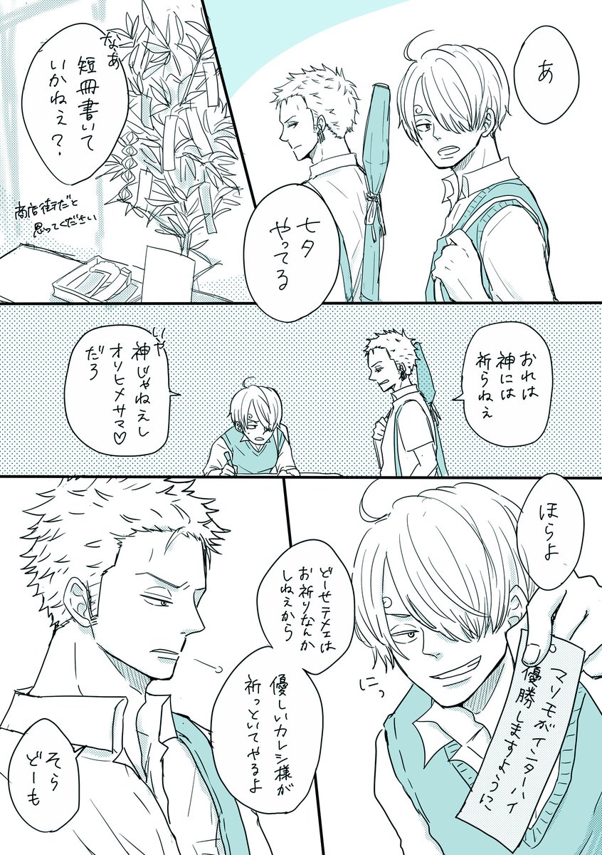 #ゾロサン真ん中バースデー #ゾロサン真ん中バースデー2020 出遅れましたがおめでとう〜🎋🤗✨ 学パロ付き合ってる高3の二人です!この二人は真ん中バースデーが七夕だとかたぶんわかってない笑