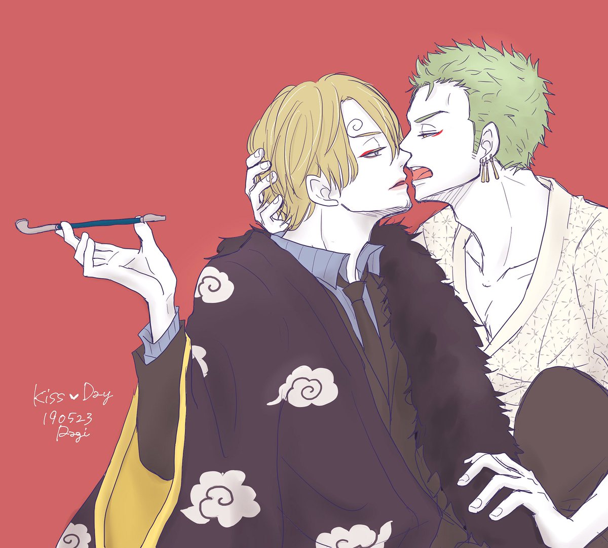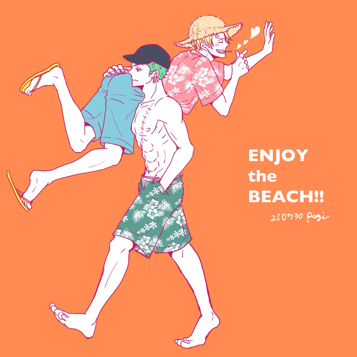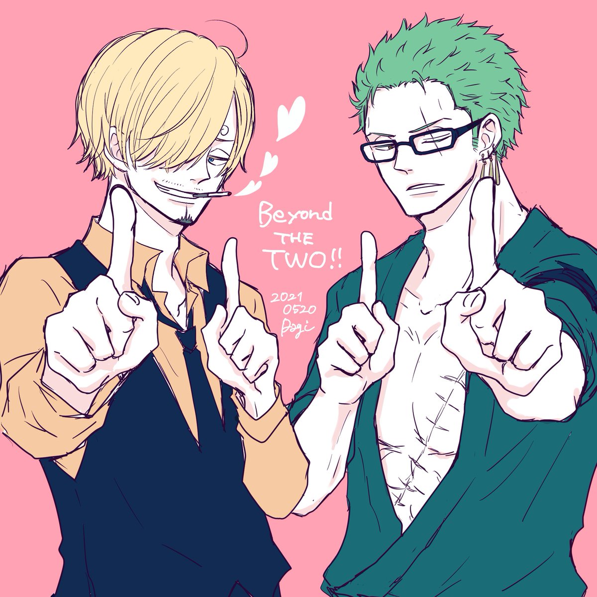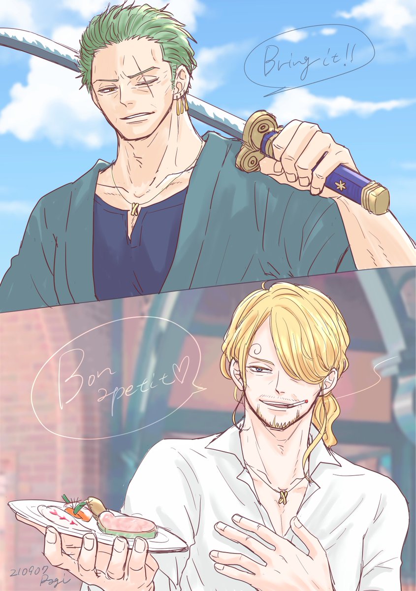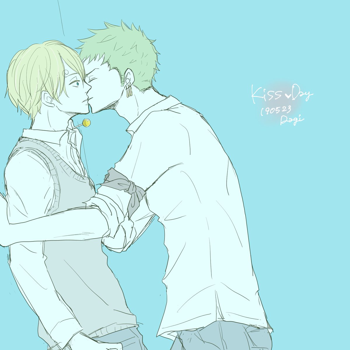 #ゾロサン真ん中バースデー #ゾロサン真ん中バースデー2020 出遅れましたがおめでとう〜🎋🤗✨ 学パロ付き合ってる高3の二人です!この二人は真ん中バースデーが七夕だとかたぶんわかってない笑