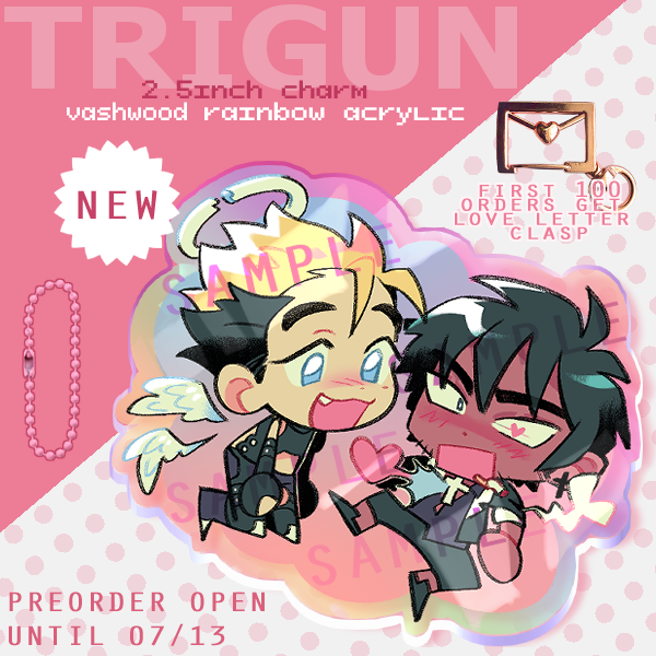[PREORDERS UNTIL 07/13 MIDNIGHT] doing another run of my love & peace crew with NEW knives charm. vashwood also is available: links below! #TRIGUN #TRIGUNSTAMPEDE