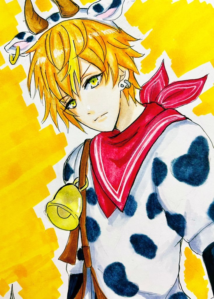 久々デジタルで描いたらアナログと絵が違う w 彰人に照れて頂きたくて🙏 #prsk_FA