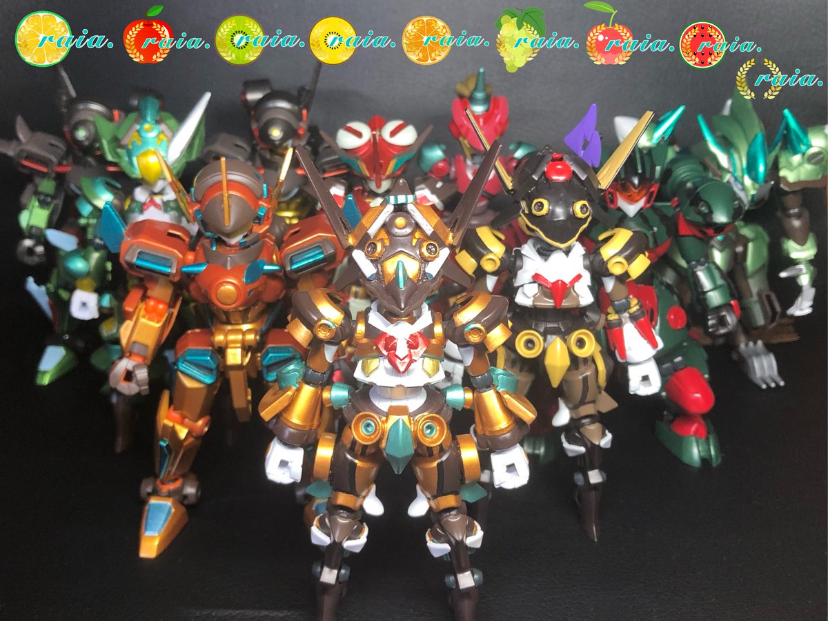 #今年作ったプラモ晒そうぜ 今年作ったLBXを並べました! 今年も10体完成(1つはリメイクだけど)させましたー 今回は1つだけ果物じゃないのを作りました! 1枚目→ストライダー 2枚目→ナイト 3枚目→ブロウラー、パンツァー、ワイルド #ダンボール戦機 #LBX #raiaメーカー