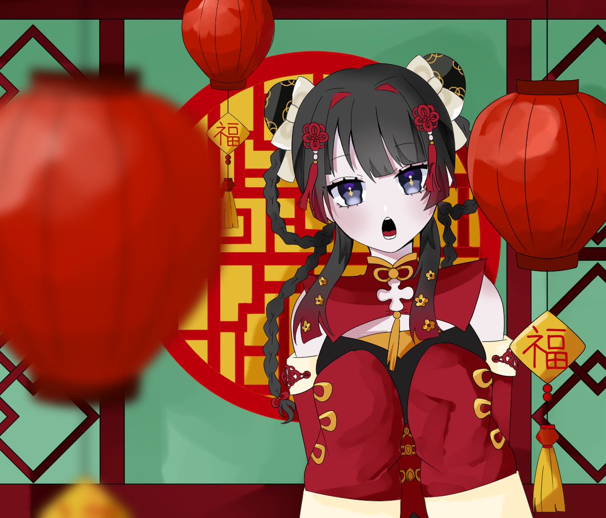 おりコウチャイナ〜!!🫶 #りりむとおえかき #絵画コウ (下にサムネ用イラスト)