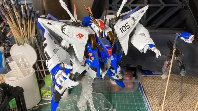 1日に何度もすいません💦 HGUC Ξ(クスィー)ガンダム 塗装改修進捗③ デカール貼りまで完了! 残すはスミ入れとトップコートのみです✨ デカールは付属のものと別のガンダムデカールを併用しました😊 明日にはYouTubeにて製作動画も配信できると思います😆 #ガンプラの画像貼るとRTされると聞いて