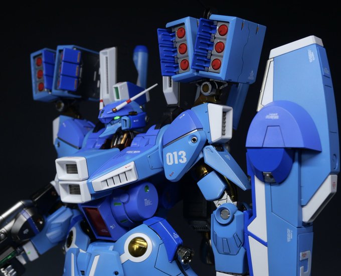 HGUC Ξ(クスィ)ガンダム 塗装改修の進捗です✨ 小説版、ゲーム版のカラーリングに合わせて胸を青に変更(งД)ง メインカメラも一回り小さくしましたが、もう少し小さくしようか検討中です🤔💦 #ガンプラの画像貼るとRTされると聞いて #Ξガンダム #閃光のハサウェイ