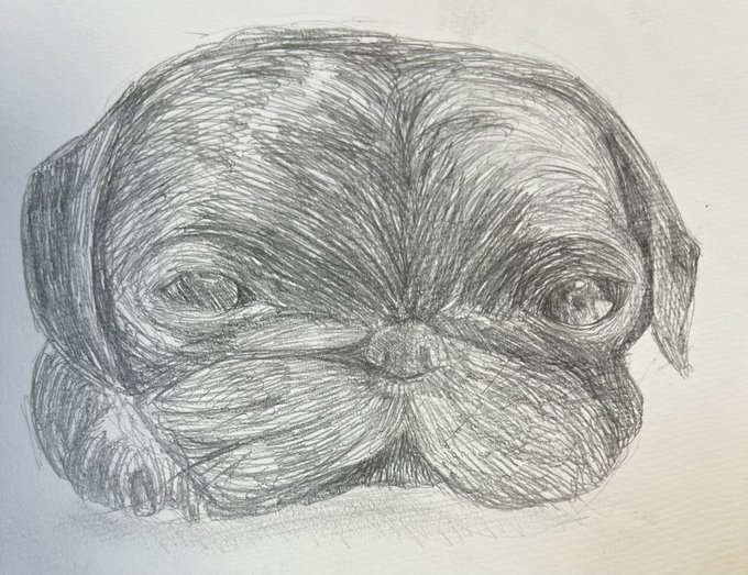 1 4 吾輩の家の愛犬…黒パグとチョコタンである… 最近こういう投稿多いだろうか…? #デッサン風 #犬 #黒パグ #アート #イラスト 22/10/28 20:30