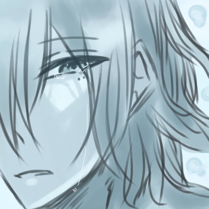 水の世界 #水色 #イラスト #長髪男子 水色で描いてみました。 なんかハマって描いたものです。