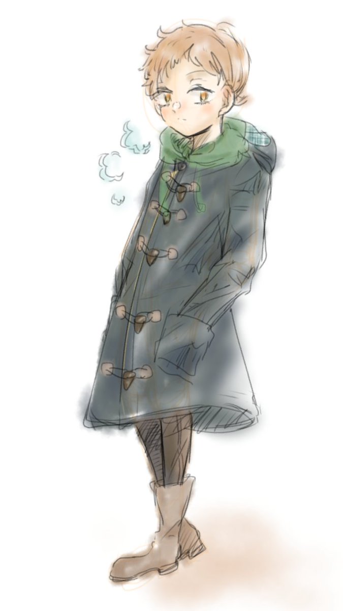 冬服こういうの着て欲しい落書き パーカー+ダッフルコートなキングめちゃかわだなぁと思って あとブーツはヒール?ちょっとあって欲しい。厚底可愛い🥰