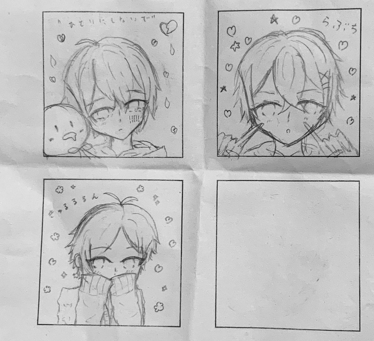 メモでお絵描きしてた〜! 最初に真顔描いて、その後照れ顔にするって言うのをやってた〜! #うらたぬ王国の美術館 #志麻 #坂田です #センラの絵ぇやん