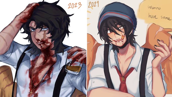 //BLOOD Ok ok one last time, since I don’t have much good color art work But holy cow ! A bit improvement lets gooo Still like the 2021 color tone though. #quackityfanart