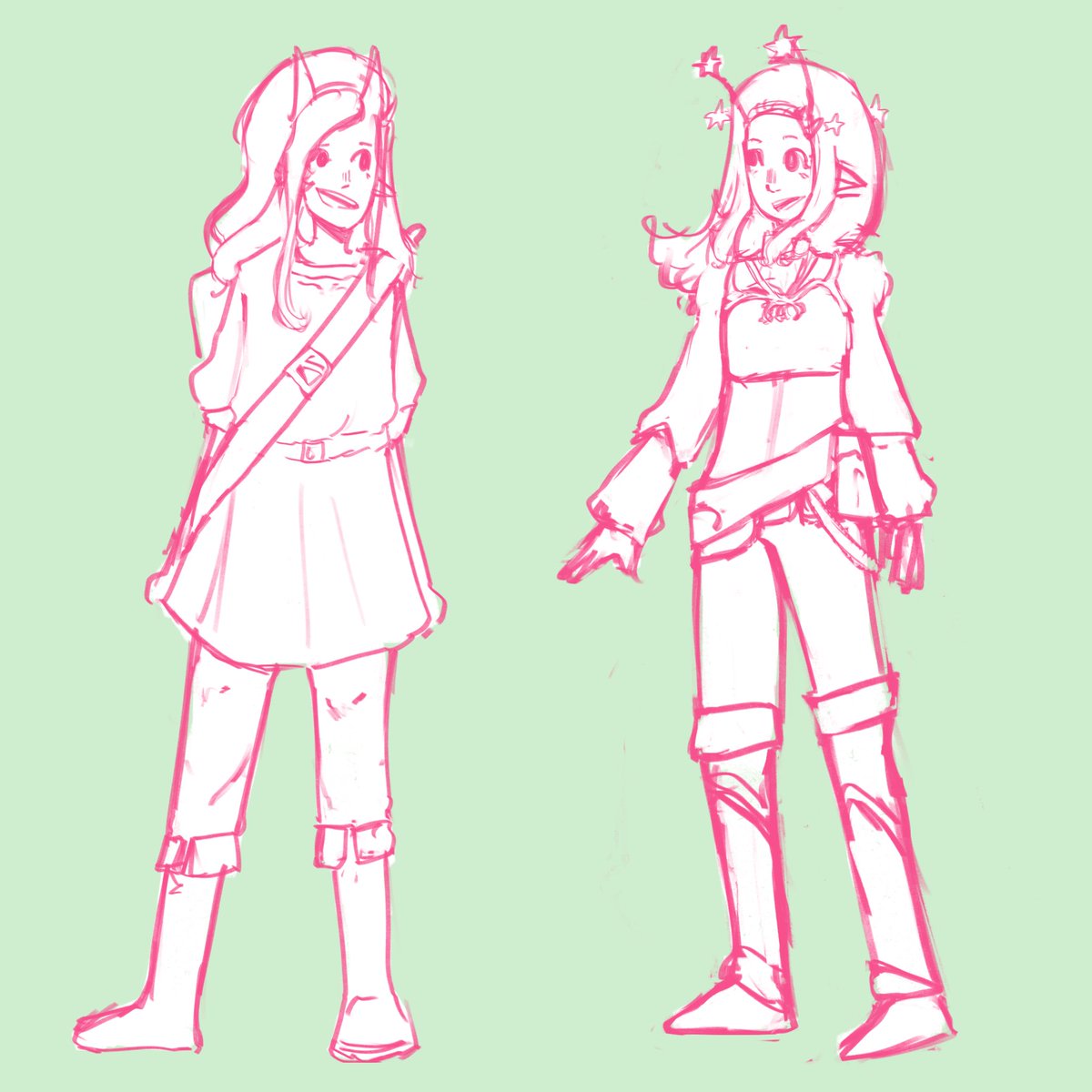 quick drawings of soul-swap outfit ideas!! ^__^ #guqqiefanart #aimseyfanart #darkeyebrowsfanart