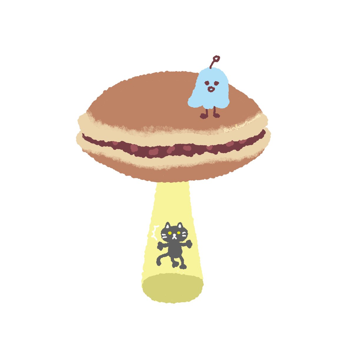 いろんな絵描きさんと交流して行きたいな〜💞 とりあえずもういっこイラストあげ〜!!☆ これはどら焼きUFOに連れ去られる黒猫さんです(ΦωΦ) #イラスト #イラスト好きと繋がりたい #ゆるいイラスト