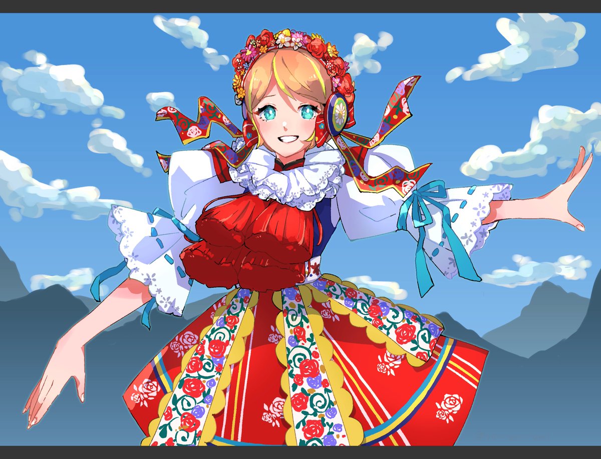 ワールドツアーないちほちゃん🌍 頭のお花とベストのふさふさがかわいいね 柄は絵師泣かせだね #駅メモファンアート
