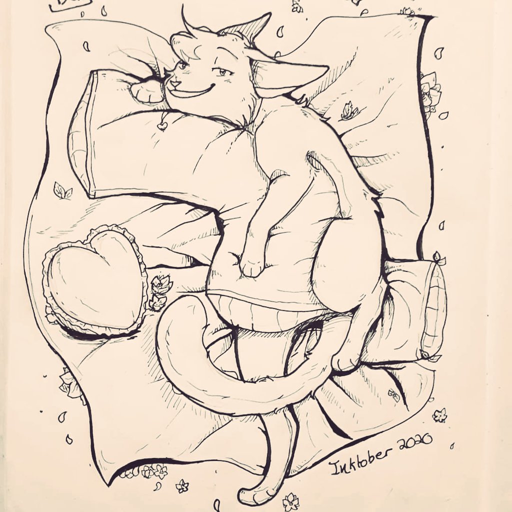 Day 23 : Oof, I'm so tired finally going to bed is gonna feel like 😌😇 #inktober2020day23 #inktober #cat #art #traditionalart #Inktoberday23 #animalart #drawing #ink #sketch #sleep