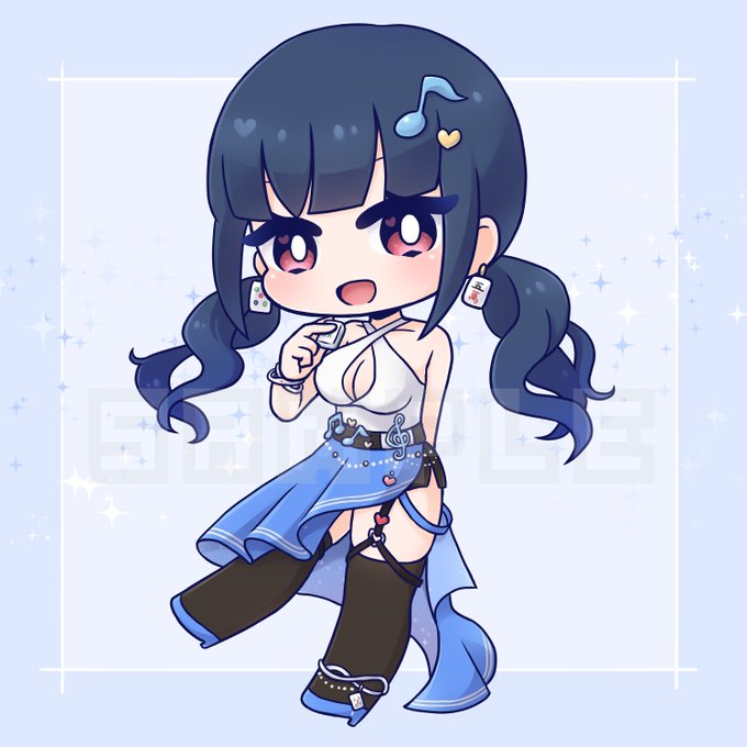【お仕事】 蒼依るりさんをミニキャラで描かせていただきました✨ リスナーさんからご本人へのプレゼントということで喜んでいただけたら嬉しいです! 麻雀Vさんなので牌とかがモチーフになっているのがかわいかったです🀄️ twitter.com/omoti0516/stat…