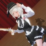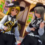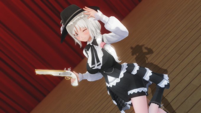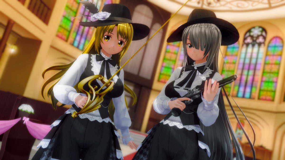 お題「片目隠れ・黄」 金色の刃と銀色の弾丸で鬼を滅する悪魔ハンターだそうです 「私の銀弾が貫くのは、何も人狼だけではないぞ?」 「・・・鬼と悪魔は別モノなのではないでしょうか?」 #COM3D2 #cm3d版深夜の真剣エディット60分一本勝負