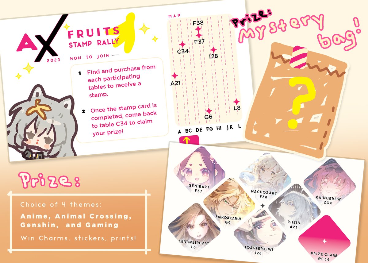 My AX catalogue!! Much new stuff, and I'm hosting a stamp rally! 🍌 #AXArtistAlley2023 #AX2023 #AXfruits