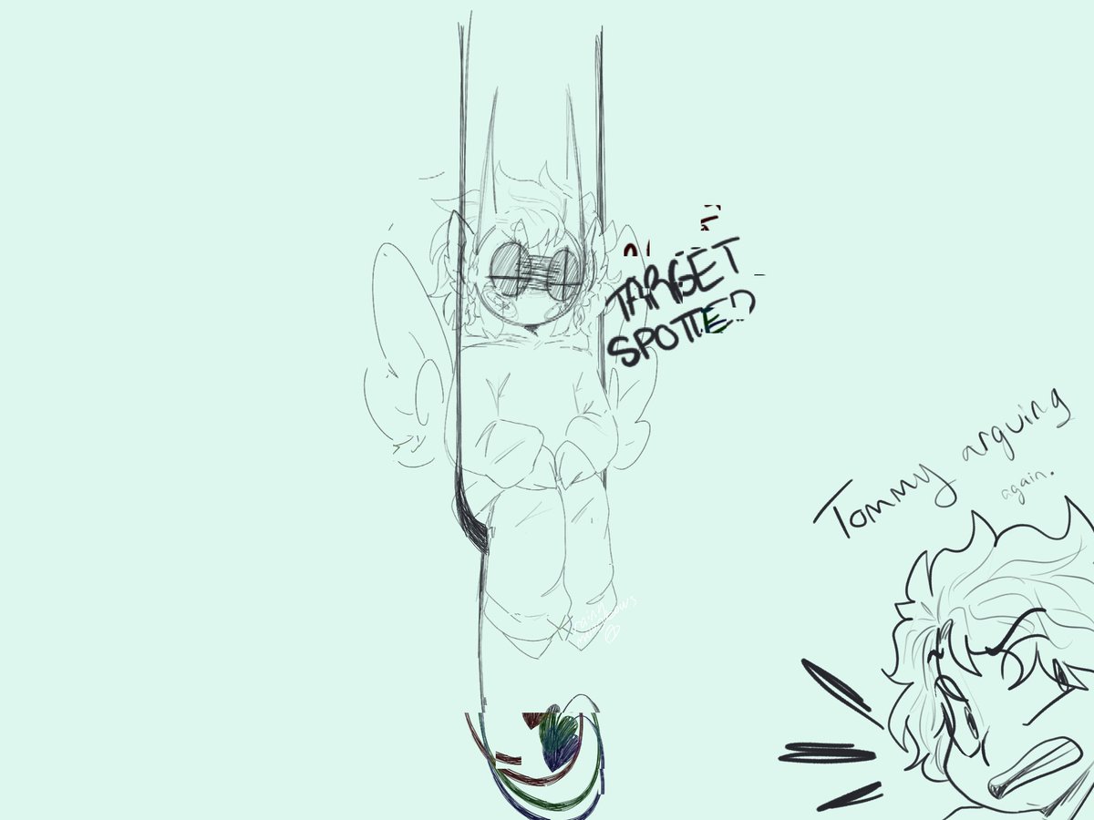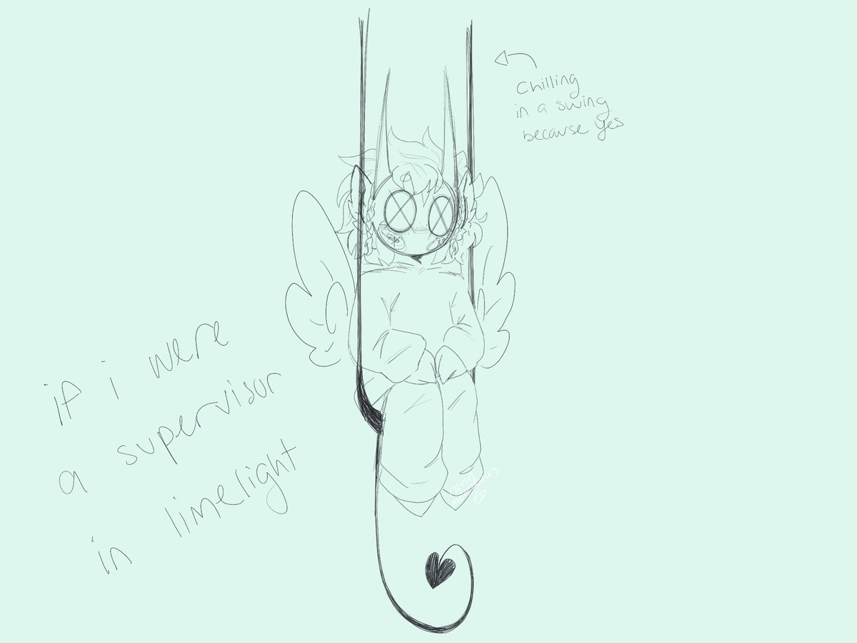 💫 body horror, glitch effect “target spotted” - if I was a supervisor in the limelight AU I’d most likely watch everyone from mah swing and just fukin screech /mainlyattommycough/ if peeps get out of line :3 💫 untag in replies! {@dsmplimelight #limelightAU #tommyinnitfanart}