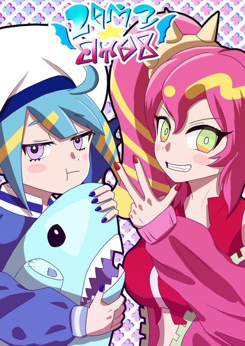 ライブツイン キスキル&リィラ! 次回のMDの更新ではイビルツイン トラブルサニーが実装されることを願って描きました。頼む! #遊戯王 #マスターデュエル