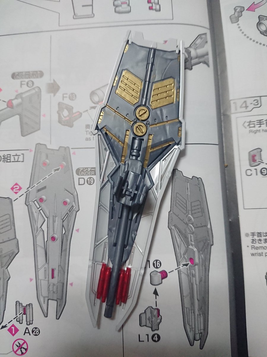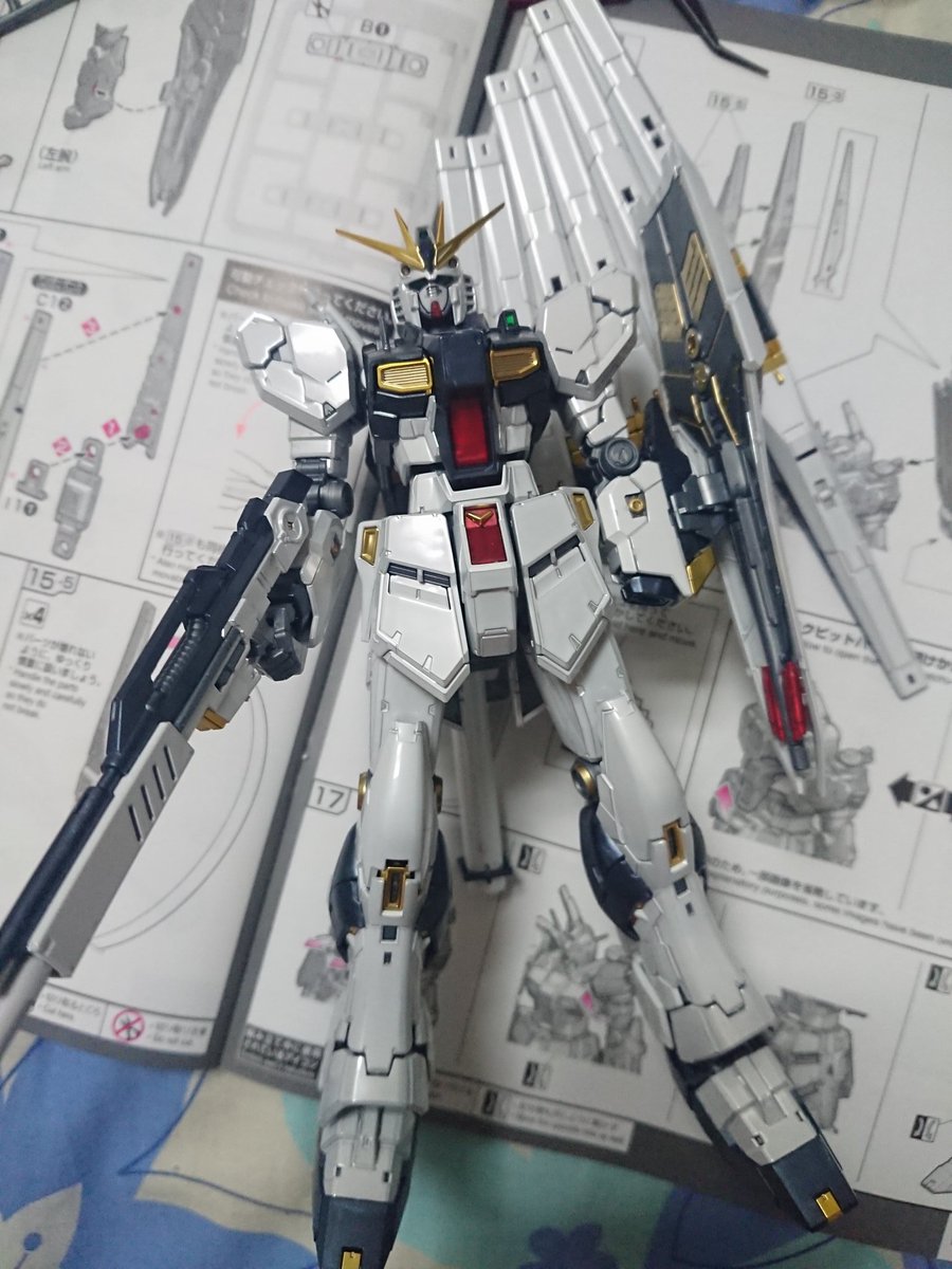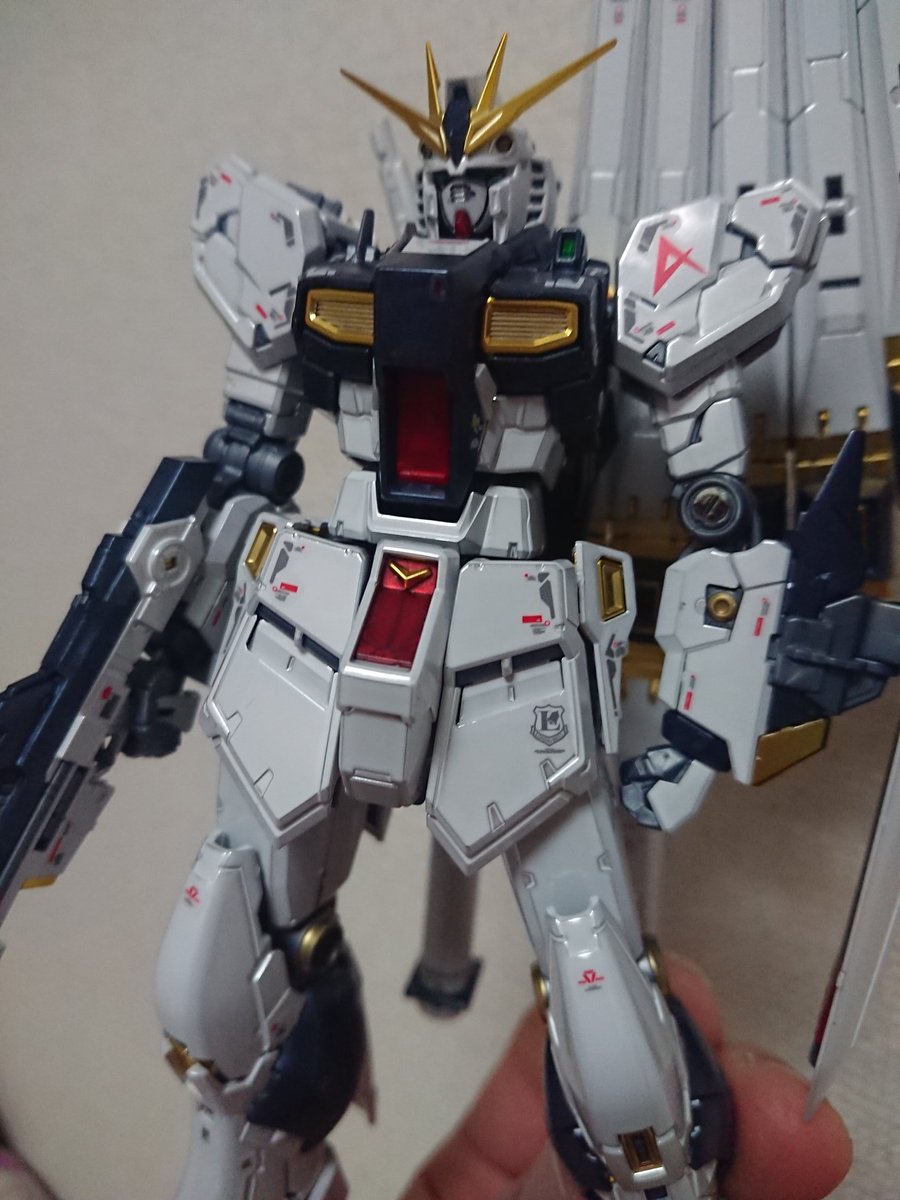 完成した! 先月売り切れで苦渋を飲んだだけに感無量。 所々ダクトみたいな所とかはゴールドで塗装。 さぁ、後はポージングしたら寝よう #ガンダム #ガンプラ #νガンダム #チタニウムフィニッシュ #ガンダムベース東京
