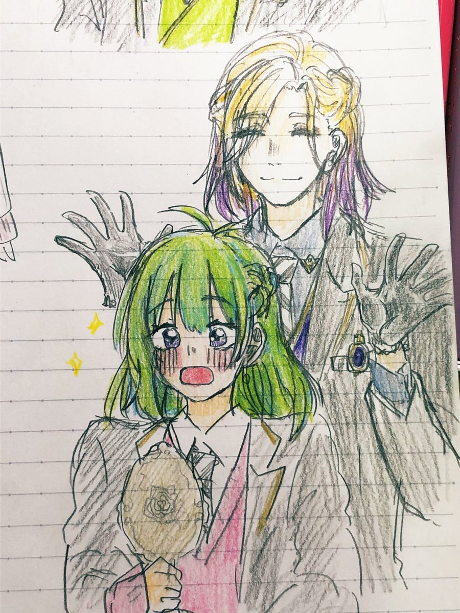 0 1 #ツイステファンアート 初描きヴィルさん 緑ぃのはオリキャラちゃん 20/05/11 23:58
