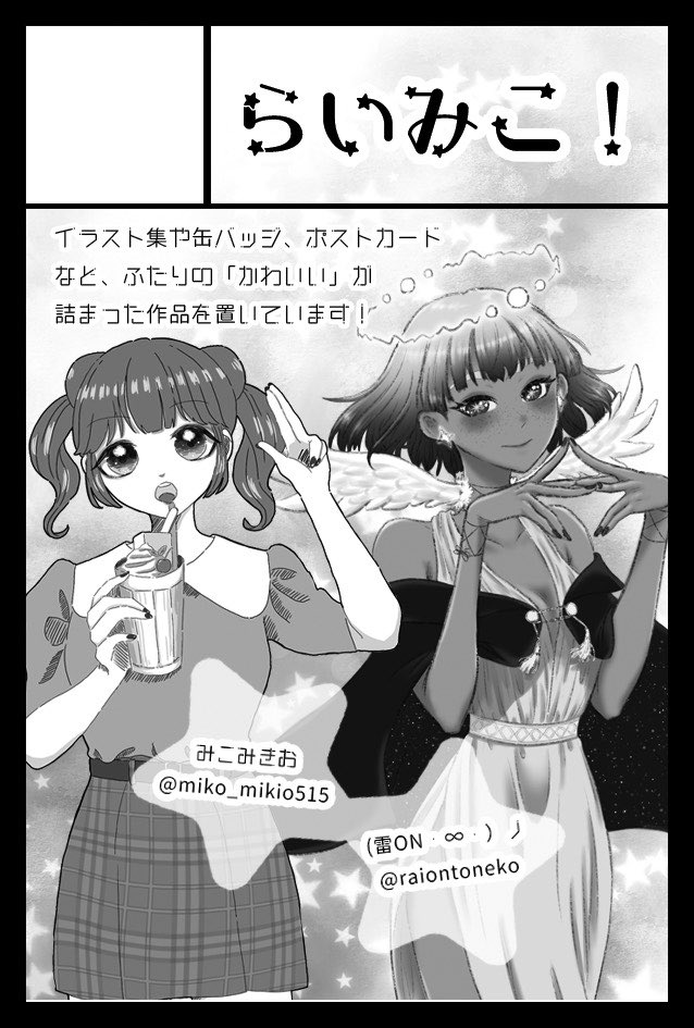 #COMITIA136 に「らいみこ!」でみきお(@miko_mikio515 )とでます。 グッズの現物展示予定です。1枚目の画像は当日無配ペーパーで置きます。 “ひ19”に遊びにきてね〜〜