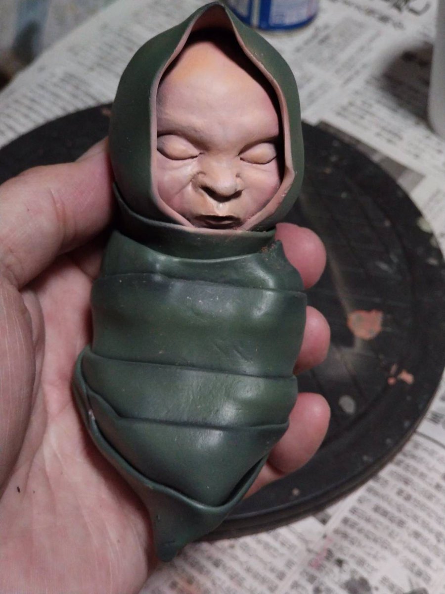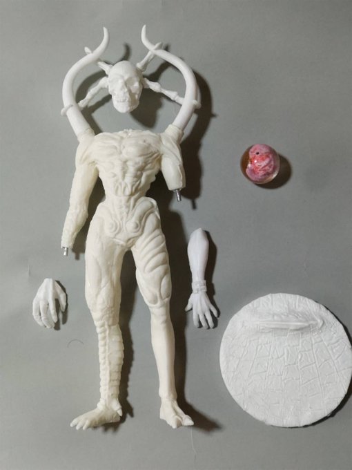 ななめみぎ 「Flying heads」 展示完成品 3万円 個数1 キット 1万円 個数4 約30cm ベース10cm キットは3mmのアルミ線で仮組み 胎児ボールは塗装済み。 卓番4-07-13 #赤羽会 #WF2023W #ワンフェス2023W