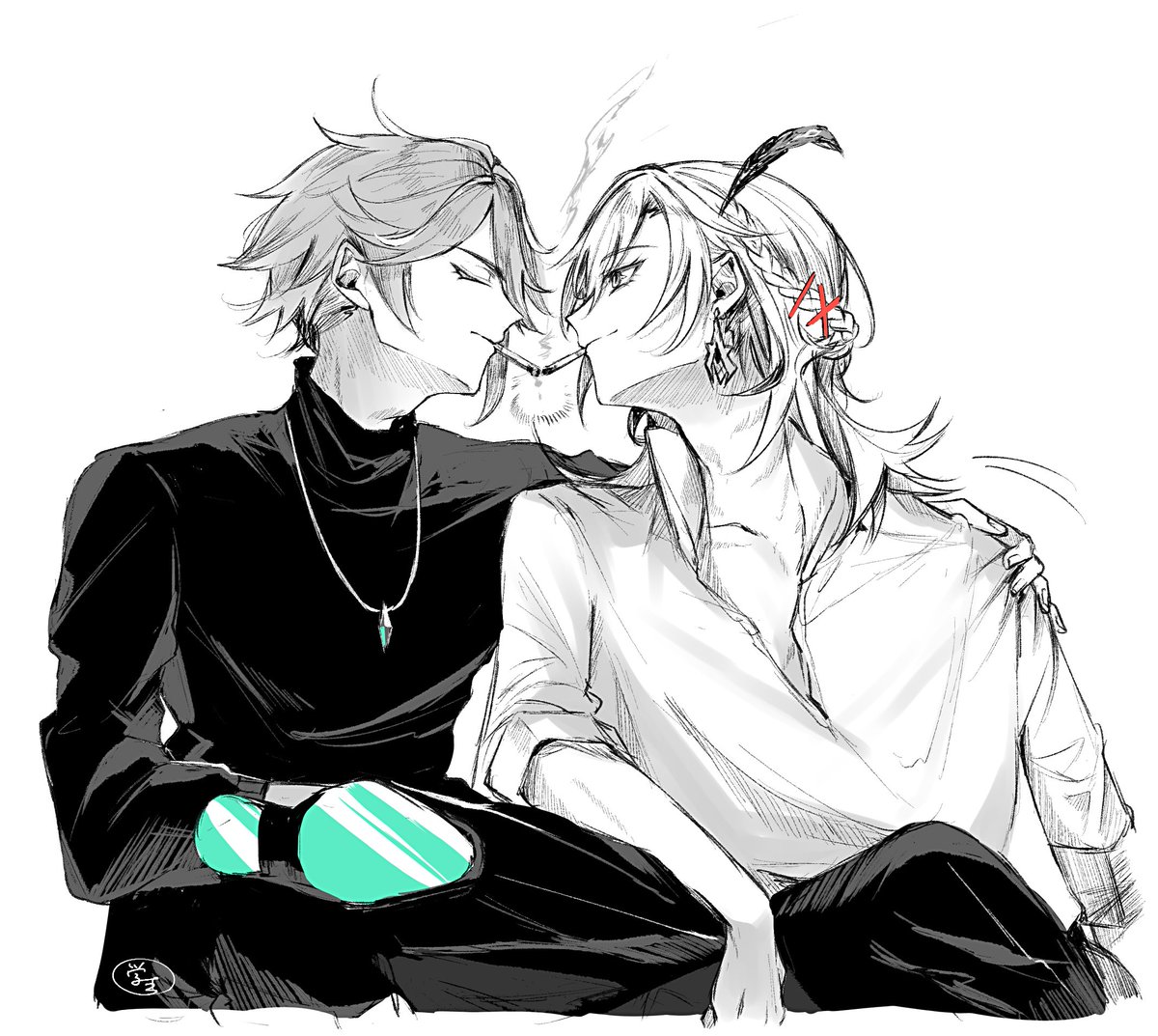 ※喫煙、現パロ シガーキスするアルカヴェ🚬