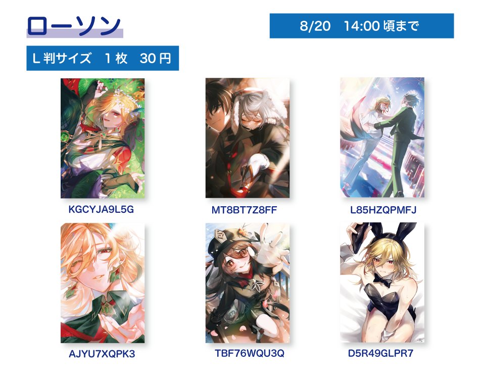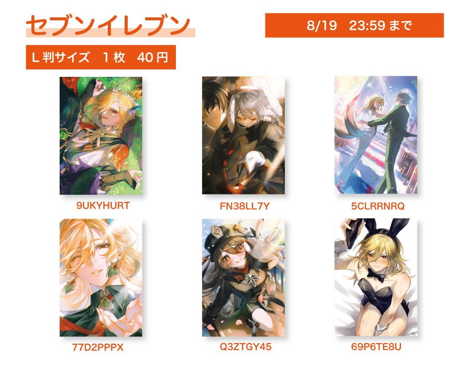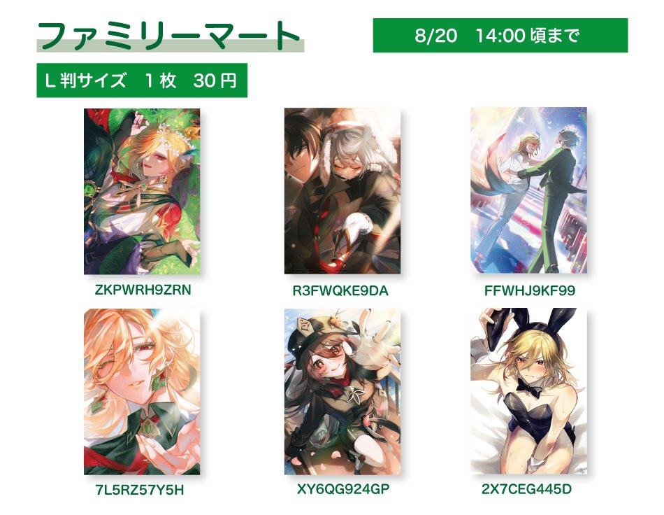 【ネットプリントのお知らせ】7.8月 7月〜最近までに描いた絵のネップリ登録をしました! 本日から以下の店舗で印刷可能です! ・セブンイレブン ・ファミリーマート ・ローソン ・ミニストップ ─────────── ★サイズ:L判(89mm*127mm) ★料金:画像参照 ★印刷可能日時:画像参照