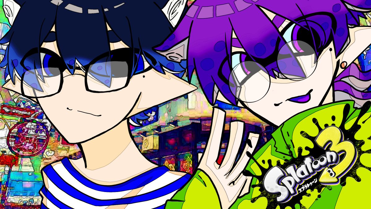 【サムネイル風イラスト】※再投稿(メガネ付け忘れ) ハレさんがスプラ3を始めたので記念に描いてみました!!!ついでに俺も♪ 昔スプライラスト描いていたんで慣れてました✌️ @hasuki_hare メンション2回目失礼しま #スプラトゥーン3 #サムネイル #イラスト