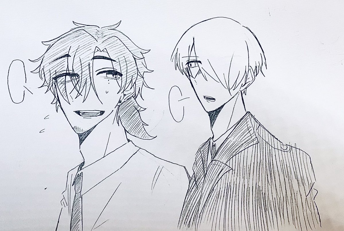 ネタ増えたんで学校で雑ながらも描きました〜笑い止まらんわ((( このコンビ良いなぁてぇてぇ #イラスト #てぇてぇコンビ #うちのこ