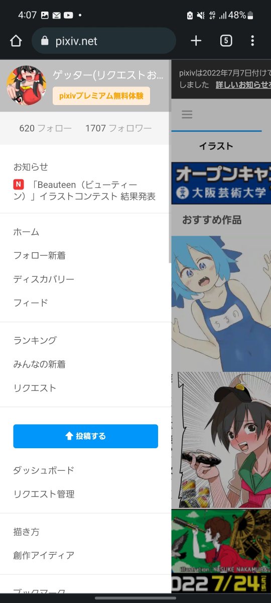 0 1 超久々にpixivに復帰したんぜよ。 #pixiv 22/07/10 16:08