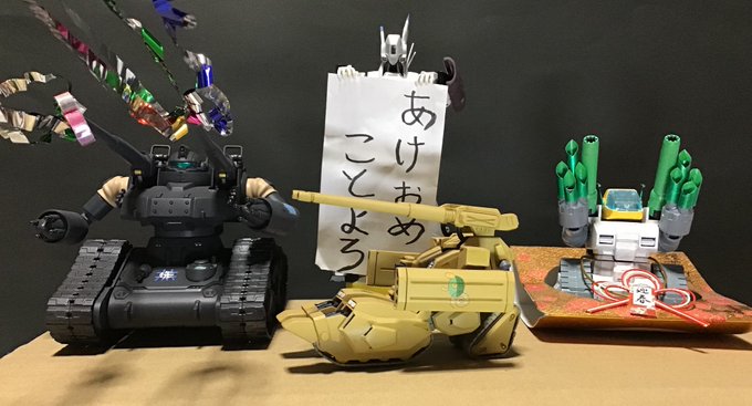 ハッピーニューイヤー‼️&角谷前会長お誕生日おめでとうございま〜〜す‼️🎉 今年はカバさんチームガンタンクが増えました! 次回は鏡餅新しく作ろうかしら! #角谷杏生誕祭2019 #happynewyear #元旦にガンタンク #ガンプラ