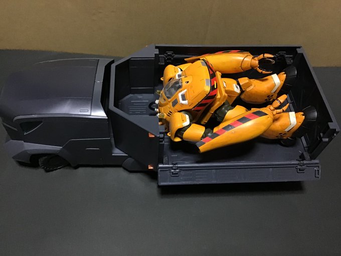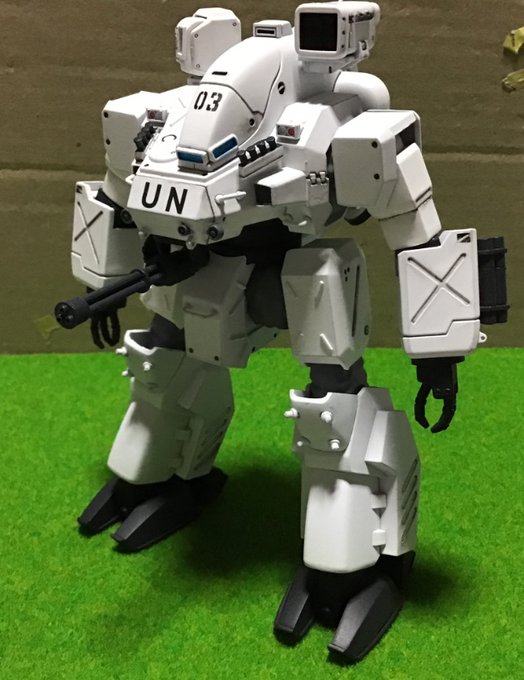 #パトレイバー模型部 いや〜〜今日はトップコート吹いてる時に落っことしちゃって塗り直しやらデカール貼り直し、別パーツはマステで塗料剥がれるし…溜息大きく修正作業してたぁ… デカール予備があって良かった…ちゅかれた