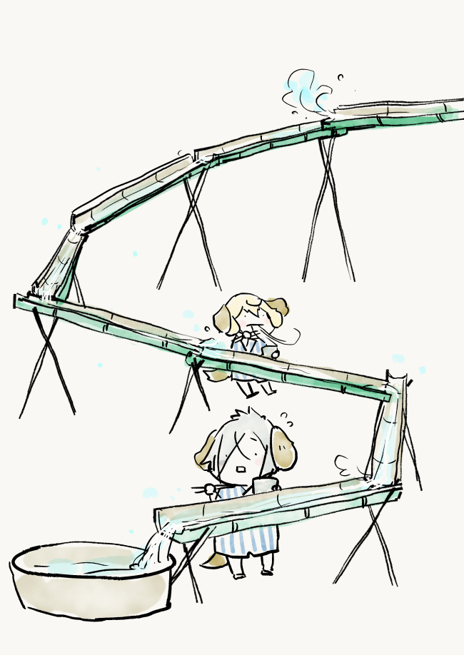 リクひとつめ 「🎏にのる🐶🐶」 それがし田んぼに映る空大好き侍