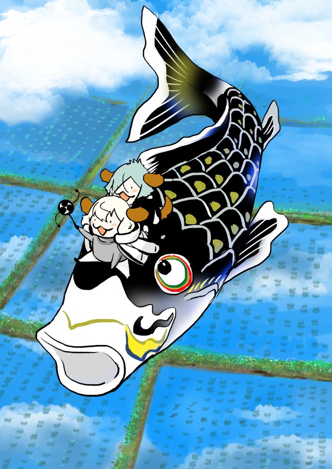 122 673 リクひとつめ 「🎏にのる🐶🐶」 それがし田んぼに映る空大好き侍 23/04/30 03:17