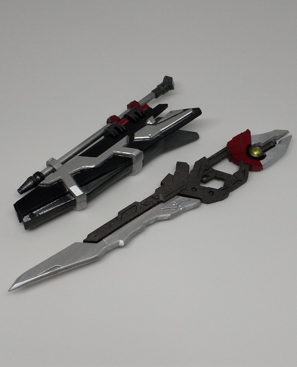先日のAKガーデンで購入させて頂いた機械油そばさん@kikaiaburasoba のガラテイア完成しましたー! 格好良い!コア光るの凄い・・・! 刀身のGXダークメタルブルーが良い感じにプロップの色近くて満足 これは治様早く欲しくなる・・・! #アサルトリリィCHARM部 #アサルトリリィドール部