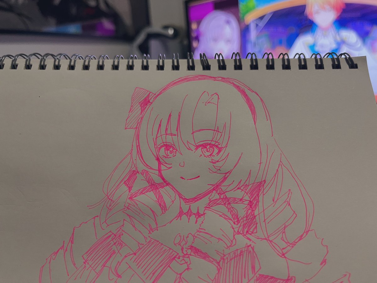 配信見ながらボールペン一発描きチャレンジですわ〜 #サロメ百万展