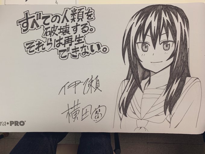 三年前のきょう、晴れる屋トーナメントセンターさんで『すべての人類を破壊する。それらは再生できない。』第3巻発売記念トーナメントをやってたみたいです! 写真は上位景品だった横田卓馬先生の直筆イラスト入りプレイマットです。 #すべそれ #mtgjp