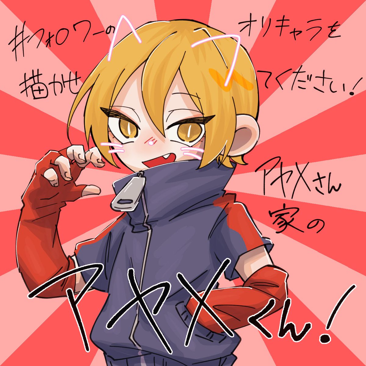 # フォロワーさんのオリキャラを描かせてください 何お借りしようか悩んでたらオリキャラ君の情報出ててせっかくなので描かせてもらいました! 1枚目が騒がしいので2枚目背景無しで…